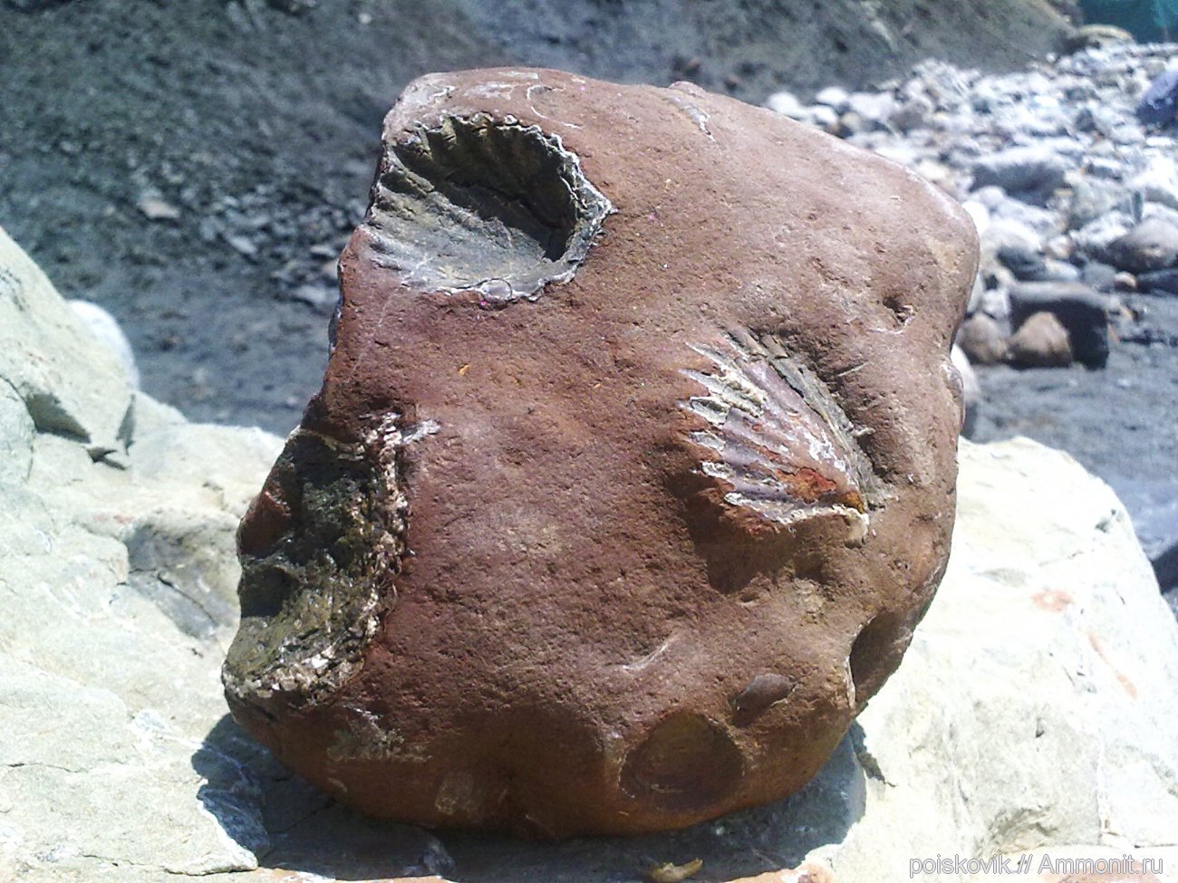 Раковины двустворок в среднеюрских глинах Золотого пляжа. Размеры моллюсков: 4,5см Х 3,5см
