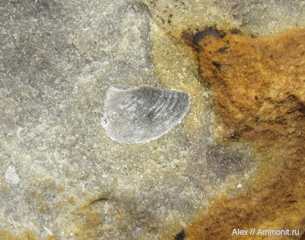 Маленький аптих Laevaptychus. Его длина по большей стороне всего 7 мм.
