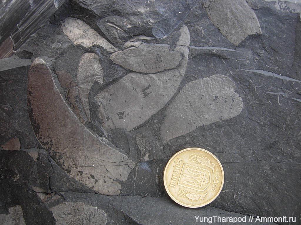 По моим наблюдениям в отвалах ш. "Заря" (г. Торез Донецкой обл.), разрабатывающей пласты h (6,7,8), среди птеридоспермов распространен невроптерис, преобладает гигантский, хотя встречаются и несколько других, еще не идентифицированных мной видов. Отпечатки зачастую имеют характерный блестящий, золотистый цвет.