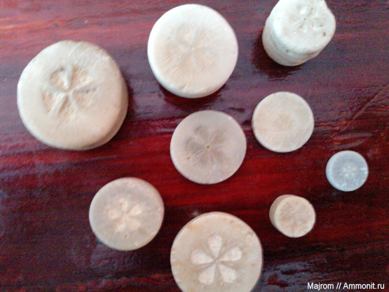 я нашла их в краснодарском крае!!! еще есть там белемниты, а вот щас узнала, что это морские лилии!!! спасибо:) | ||||||
