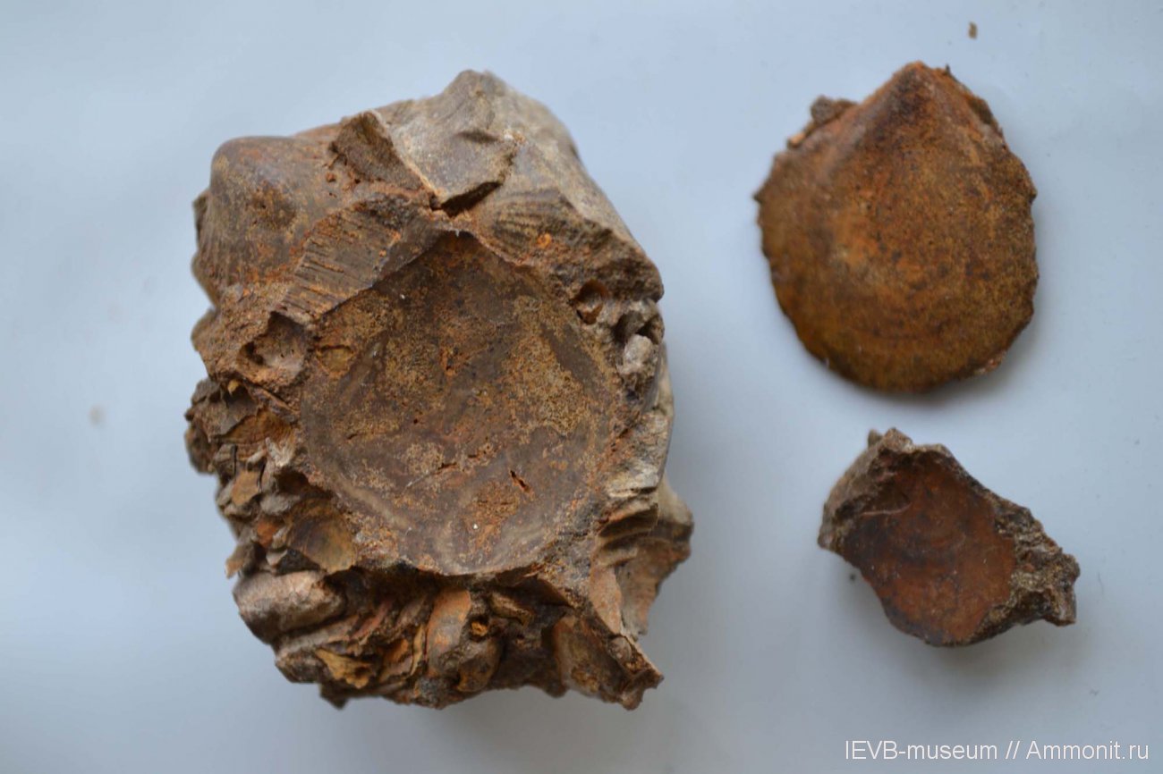 Ядра и отпечатки из железисто-фосфатного конгломерата. Размер до 1,5 см.