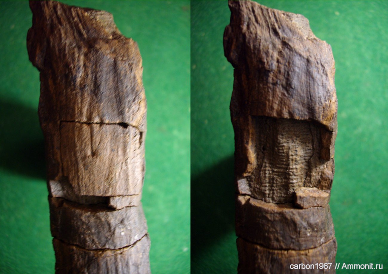 Я специально не приклеил фрагмент древесины. И теперь видно что расположено под листовой подушечкой ( очень похожей на подушечку лепидодендрона ).