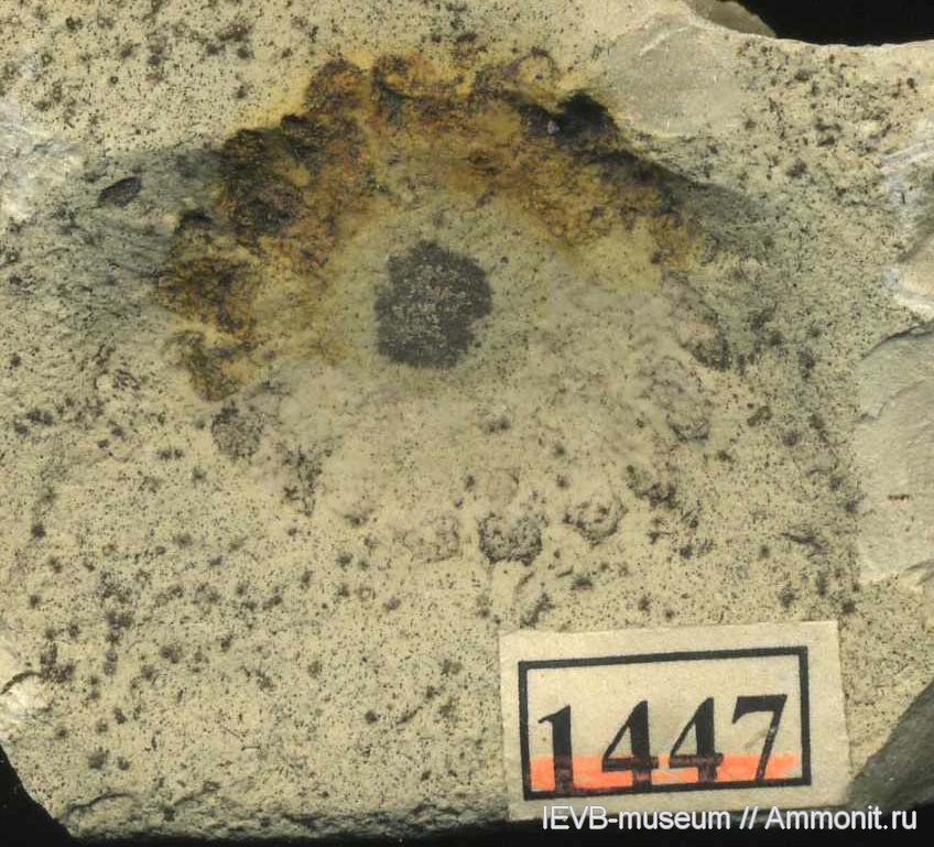 Единичная находка. Отпечаток на кремнистом мергеле. Ширина рамки номера 9 мм.