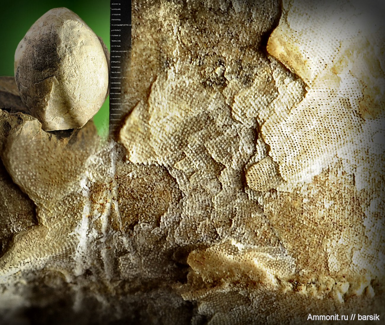 В прочных палеогеновых известняках часто встречаются различные брахиоподы. Из-за гладкого внешнего слоя вседа считал их внутреними слепками, но при увеличении оказалось. что это раковины с многослойным ячеистым покрытием. До этого была Брахиопода из отряда Terebratulidae - проекции.
