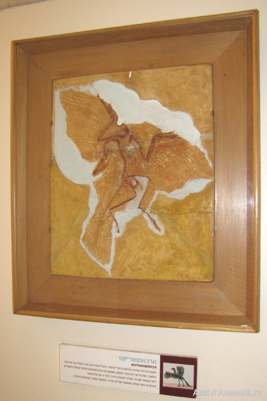 В Израиле, в городе Хайфа, в местном политехническом музее (он называется Madatech) есть слепок скелета археоптерикса. Это так называемый Берлинский (или второй) экземпляр археоптерикса. Его оригинал храниться в Берлинском музее естественной истории. Слепки этого экземпляра удивительно популярны во всем мире, у нас на сайте уже есть фото из Зоологического музея Санкт-Петербурга и из Палеонтологического музея в Москве. Есть аналогичные слепки и в других музеях как в России, так и за ее пределами.