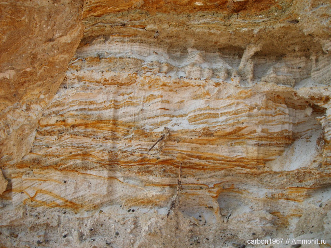 А что означают прослойки темно-желтого песчаника? (Простите за глупый вопрос, но я новичок в геологии) | ||||||