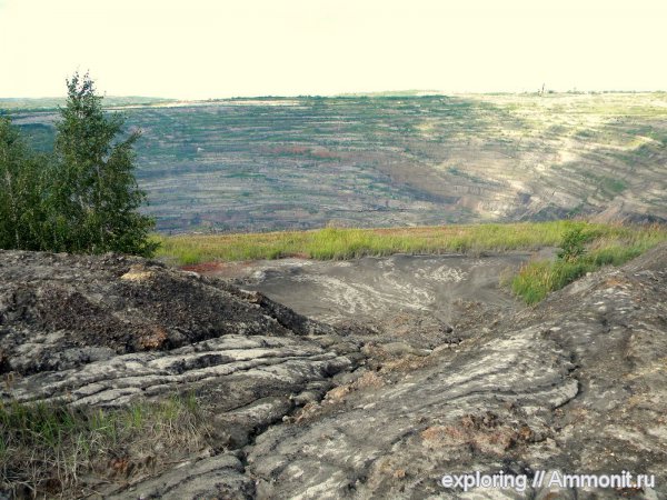 благодаря обильным ливням, которые подмочили нескольких уступов южной стенки разреза, окаменелости, в буквальном смысле слова лежат под ногами.