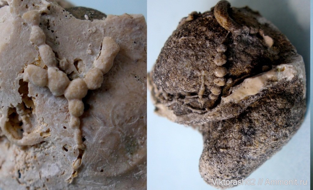 При поисках в карьере Максимовка Тернопольской обл. находились вот такие необычные шарики,размером от 0,5 до 1,5 мм, расположенные таким образом. Может это копролиты моллюсков?Они были именно в раковинах двустворок. Кто подскажет.