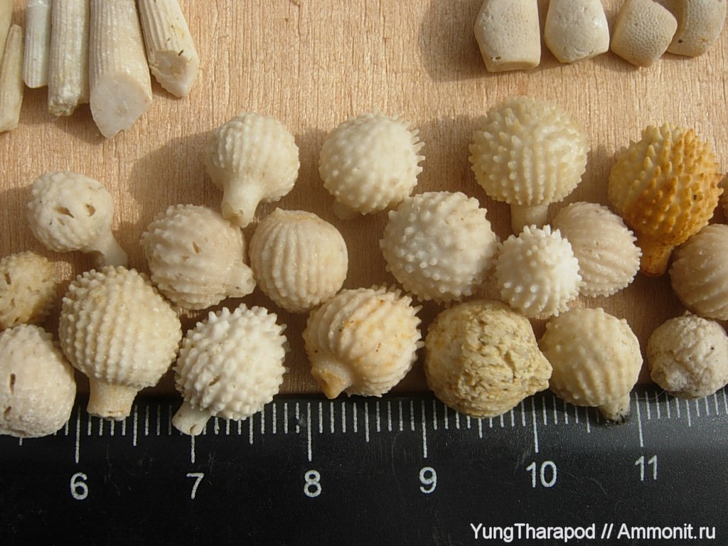 Пористая поверхность - это мшанки. А круглые иглы правильного ежа Balanicidaris sp. | ||||||