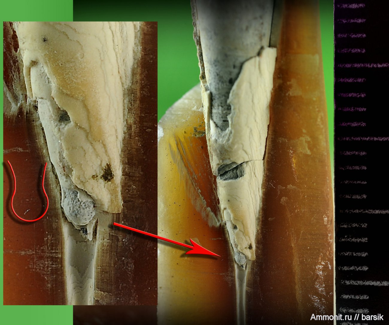 Прекрасное фото, эмбриональные камеры белемнитов сложно разглядеть и сфотографировать! | ||||||