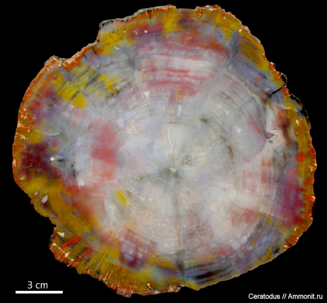 При взгляде на этот образец становится понятно почему аризонская древесина получили название Rainbow Wood (Радужное дерево). Местонахождение национальный парк Petrified Forest. Из старой коллекции.