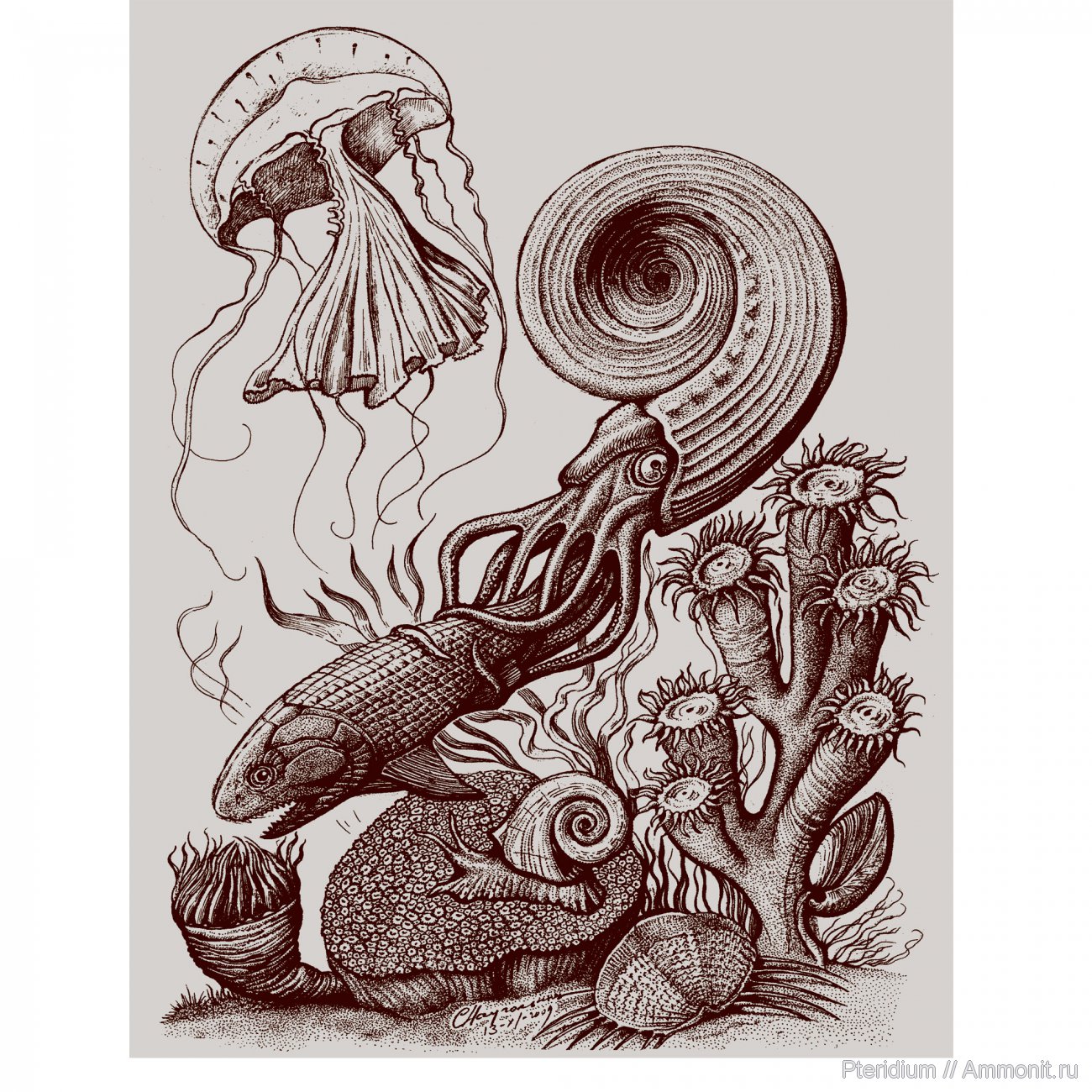 Честно скажу, завидую завидую белой завистью, всю жизнь хотел так рисовать, да не получается :) эх, девонское море бы в такой графике да с кораллами и рифами побольше и хотя бы одну cyrtospirifer на песочке, эх. Очень понравился рисунок! | ||||||