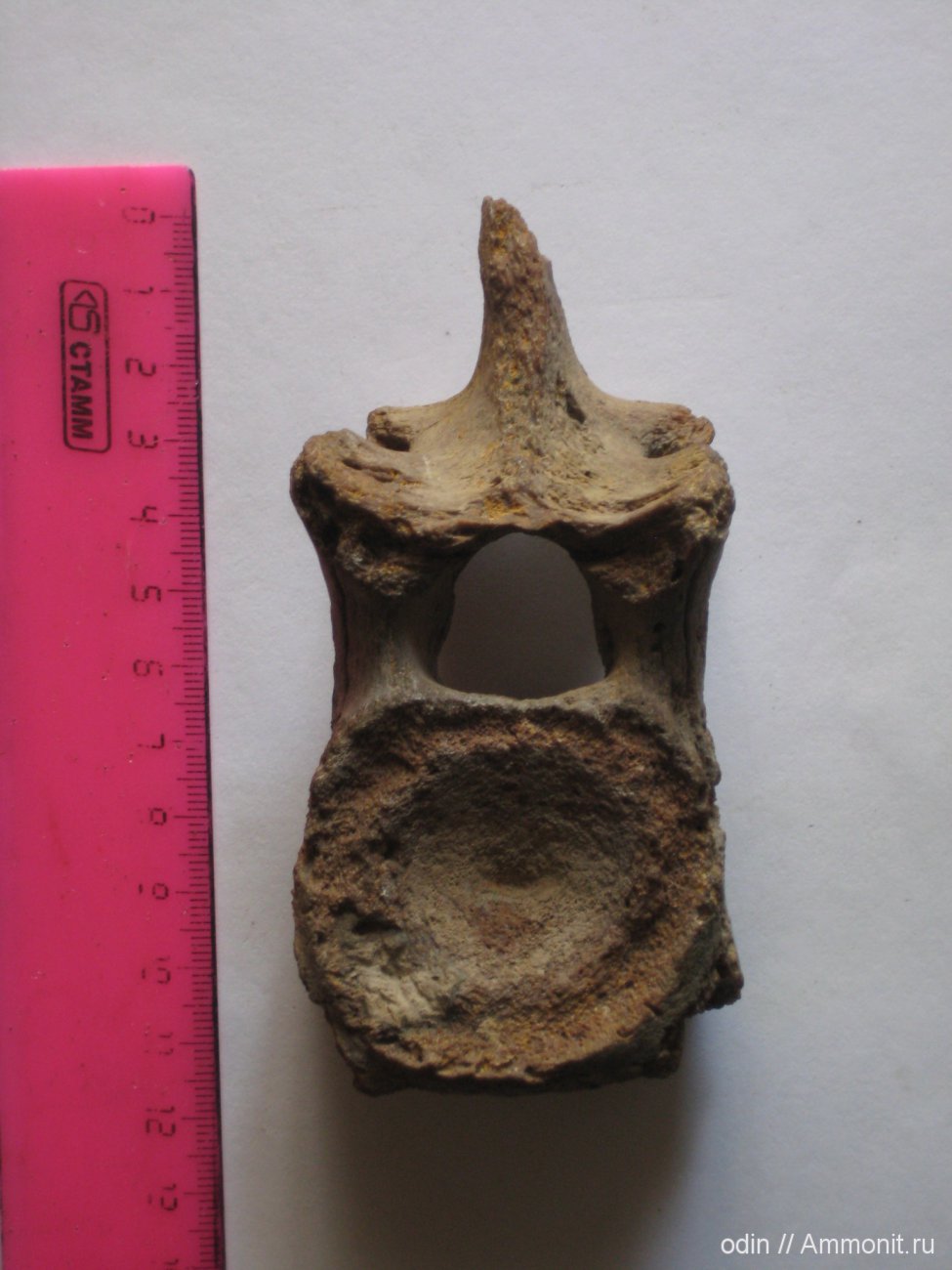 Да, очень похоже на этот образец. Вероятно и вправду плезиозавр. На подмосковных карьерах мы обычно находим остатки позвонков без отростков, а тут позвонок почти целый. | ||||||
