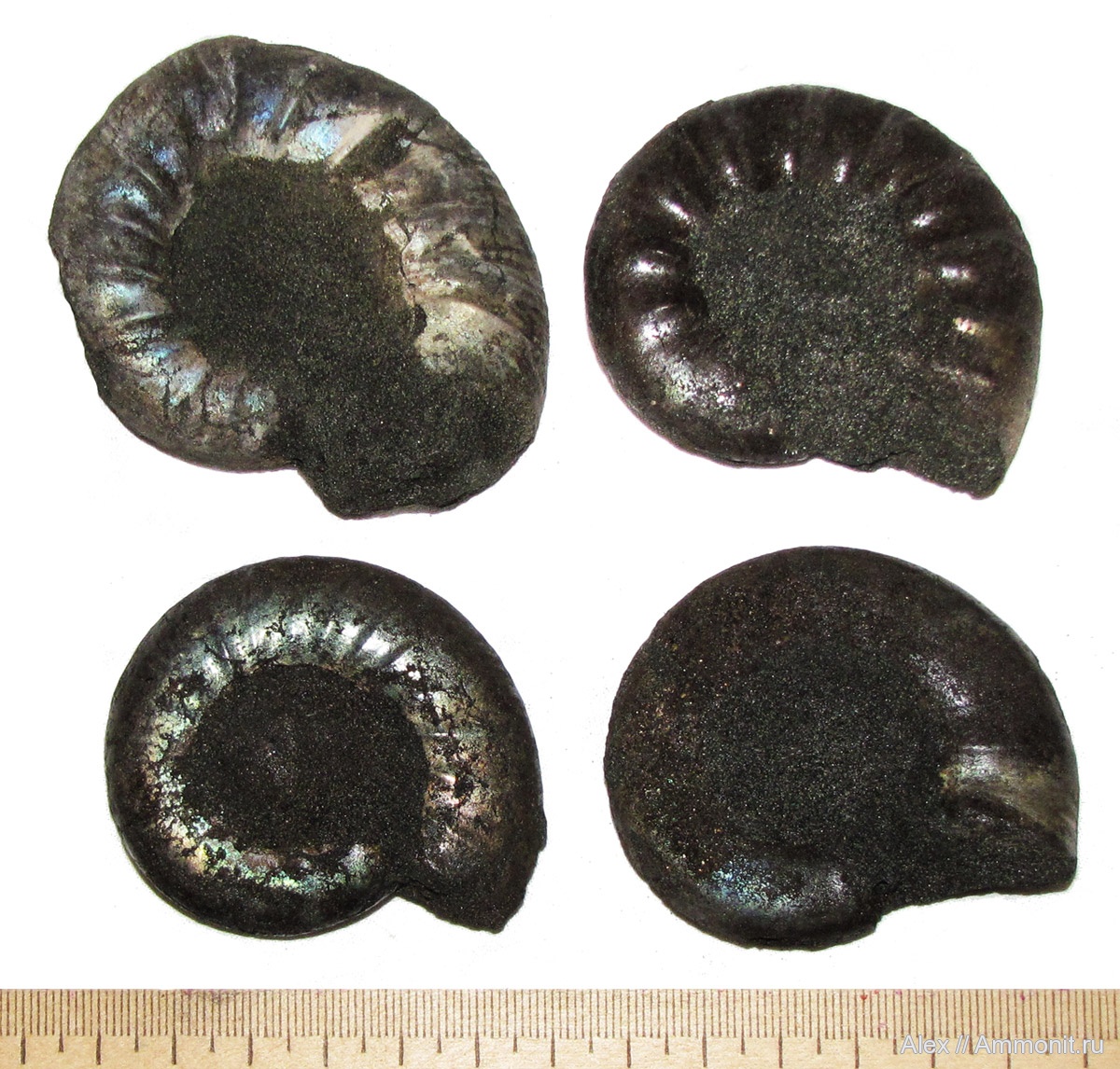 На этом фото представлено несколько разных макроконхов Kachpurites fulgens из Еганово. Они построены по мере уменьшения ребристости - слева направо и сверху вниз. Также изменяется и их толщина - аммонит слева вверху самый толстый, остальные немного тоньше.