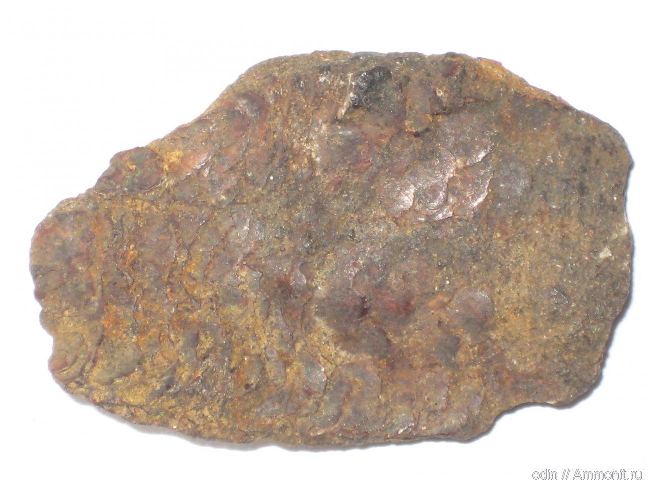 сдвух сторон образца есть чешуя,в верху обе плоскости сходятся на конус и толщина маленькая.вобщем уж сильно он смахивает на кусок современной сушеоной рыбы:) | ||||||