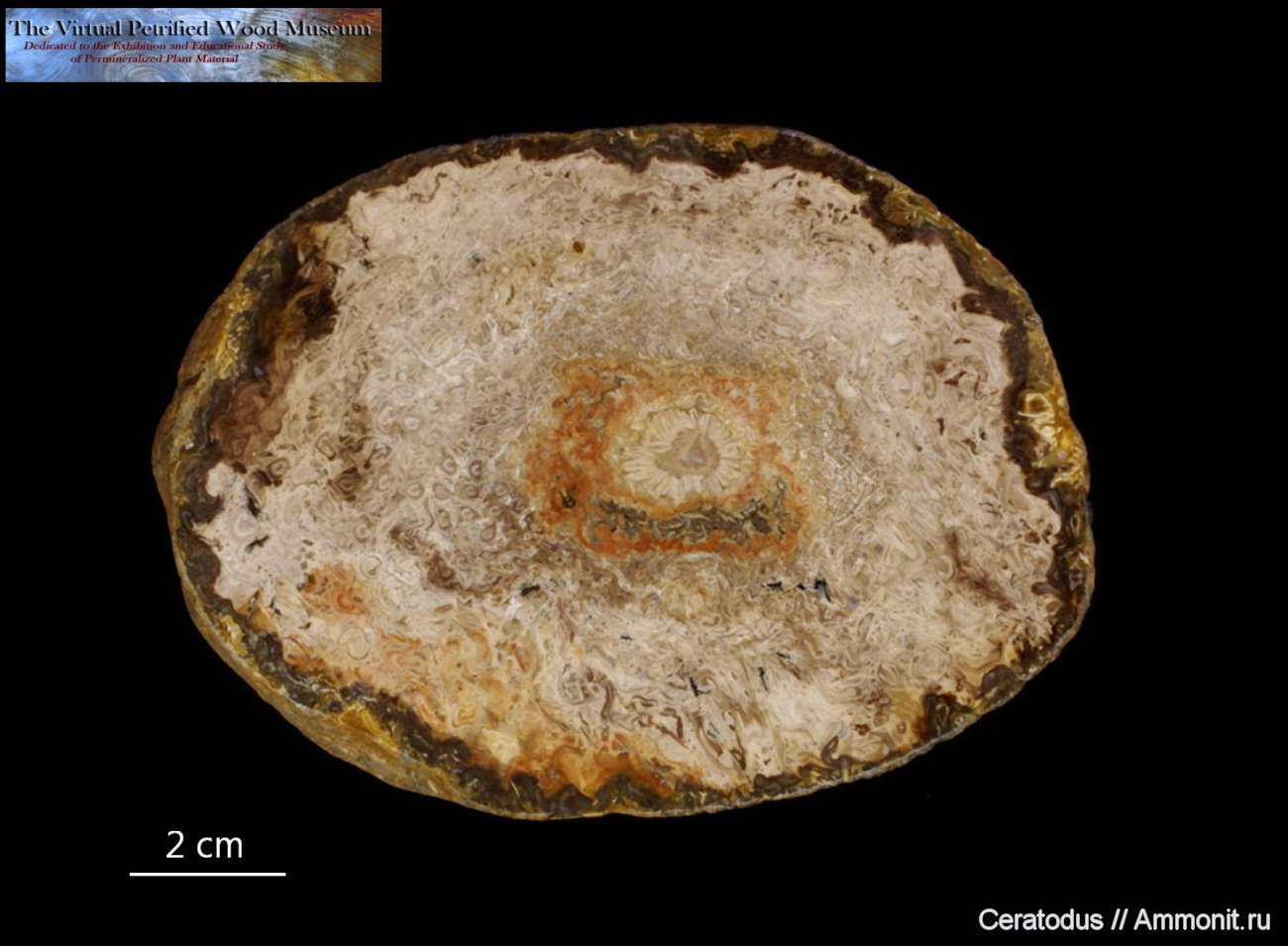 Классика жанра. Копия этого образца (срез от того же ствола, имеющий минимальные различия) представлен в виртуальном музее окаменевшей древесины . Местонахождение Queensland, Австралия.