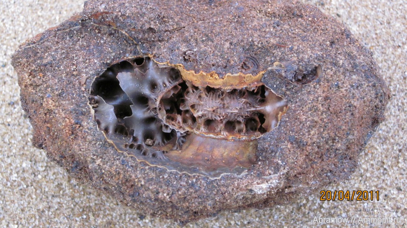 Ну я бы сказал не нарушил, а просто вскрыл! К стати, не надо пренебрегать такими находками, из них получаются иногда вполне интересные экспонаты, вот например: Laugeites stschurowskii в расколе | ||||||
