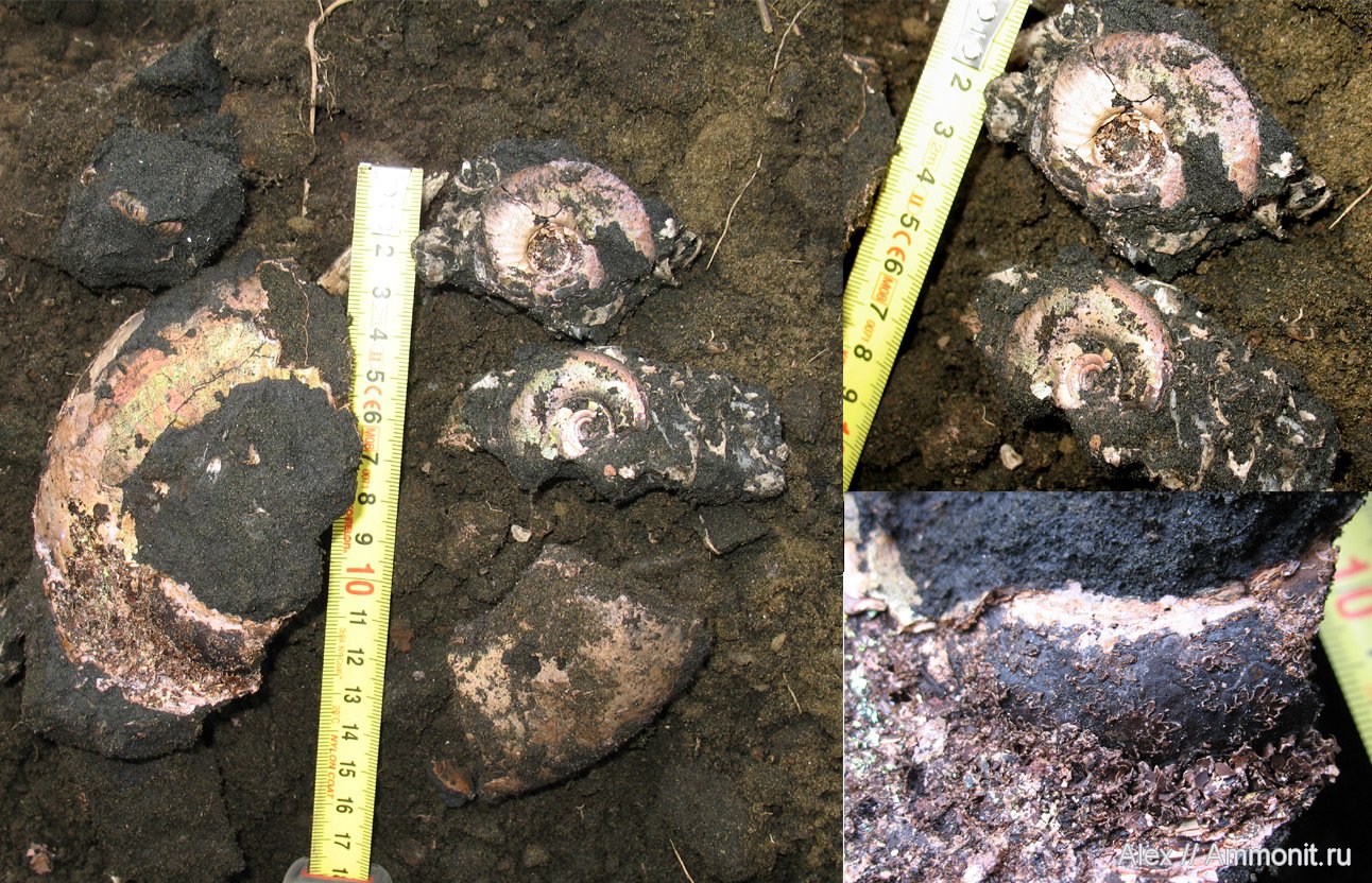 Они были в самом низу зоны fulgens, но не прямо на слое ракушечника, а сантиметрах в пяти над ним. Первого аммонита в этом скоплении нашел VitalyNcr. Крупные аммониты лежали один на другом с небольшим смещением, мелкие рядом и на них. | ||||||