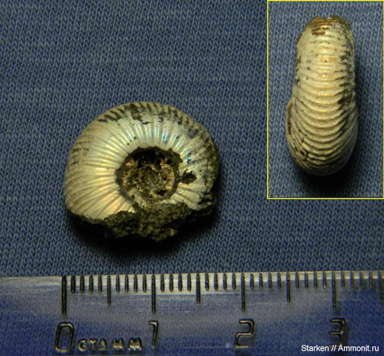 Небольшой аммонит Epivirgatites из Еганово с сохранившимся перламутром.