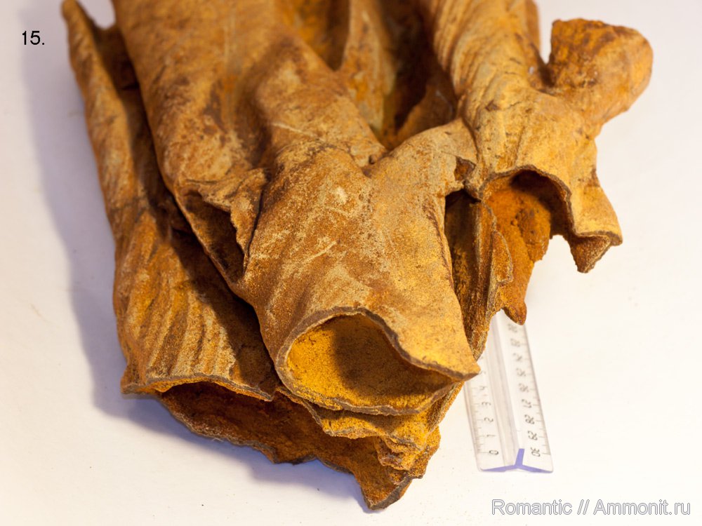 Самый крупный фрагмент ризоконкреции который удалось извлечь из песчаника. В слабом песчанике находился горизонтальный пласт окаменелостей похожих на сплющенные трубы, они плотно сомкнуты и в основном параллельны. Материал - ожелезннёный песчаник.
