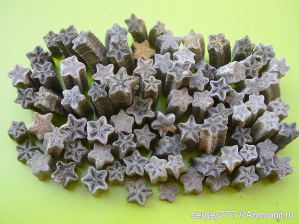 Членики - фрагменты стеблей морских лилии. Среди них видно Pentacrinus. Собрано в окресностях Судака и "Нового света",Крым, Украина.