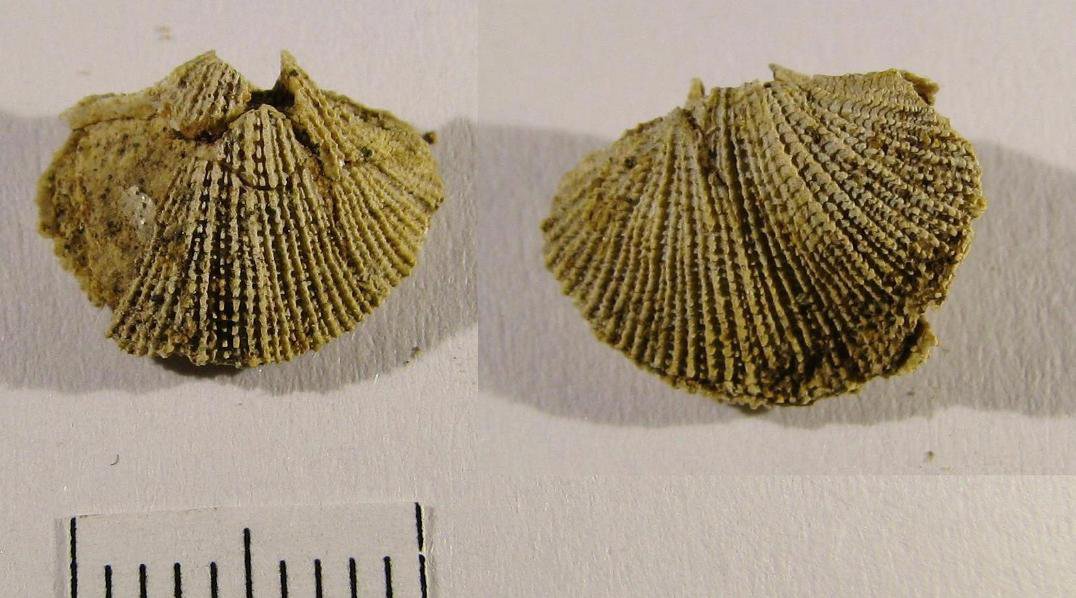 Просто тут смычковый край и макушка повреждены, да и особь ювенильная. Я все искал что-то похожее среди известных у нас брахиопод, но единственный вариант, который вчера пришел - какая-то левая ювенильная Rhynchonellida (у них могут быть такие очертания).