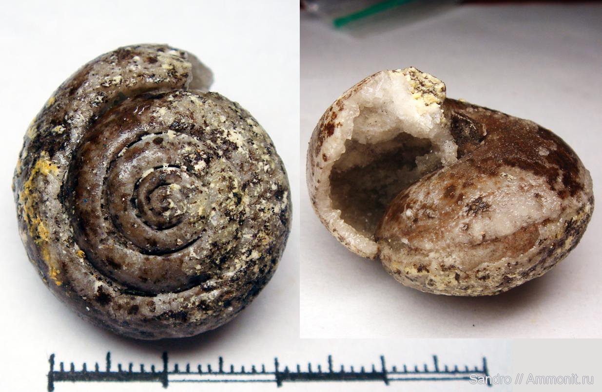 Ядро брюхоногого моллюска с кристаллическим замещенем.