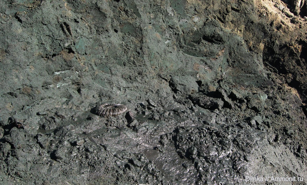 Свеженайденный Virgatites virgatus в Егановском карьере. Диаметр раковины около 12 см.
