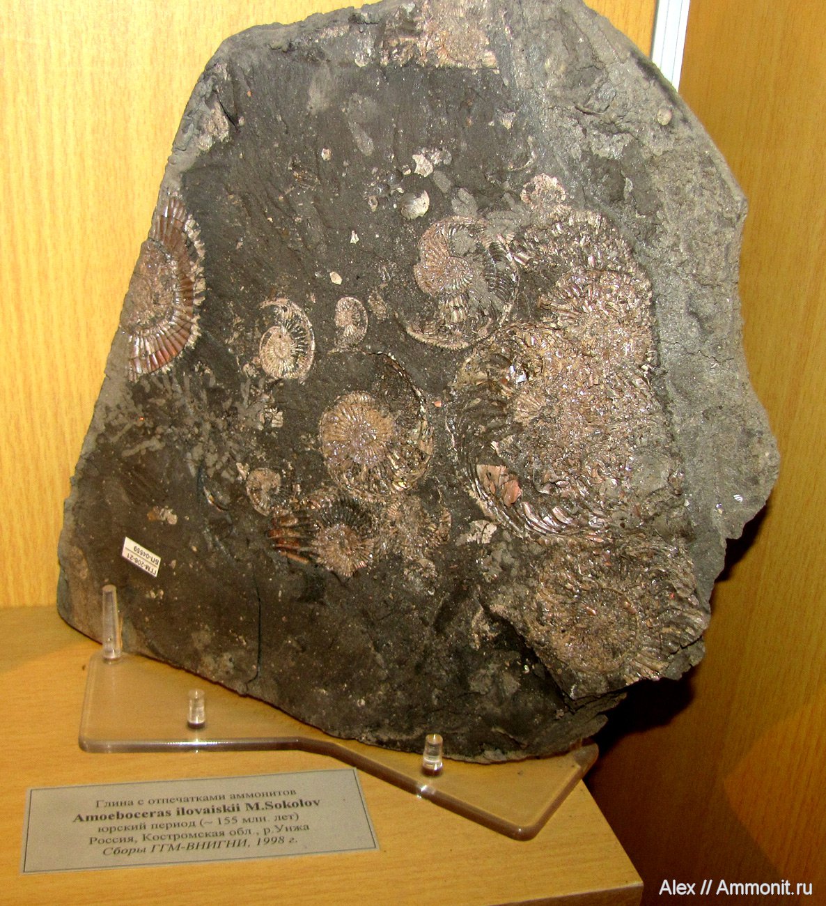 Плита с отпечатками Amoeboceras ilovaiskii в экспозиции ГГМ РАН