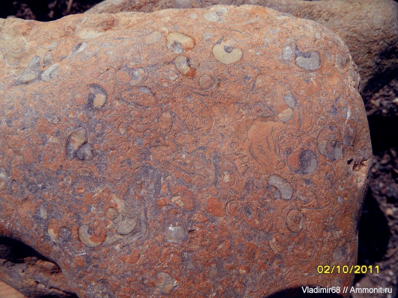Вот такие фрагменты дна с кристаллизованными гастроподами встречаются рядом с шаровидными конкрециями из песчаника, в которых может быть что угодно, а может и ничего не быть.