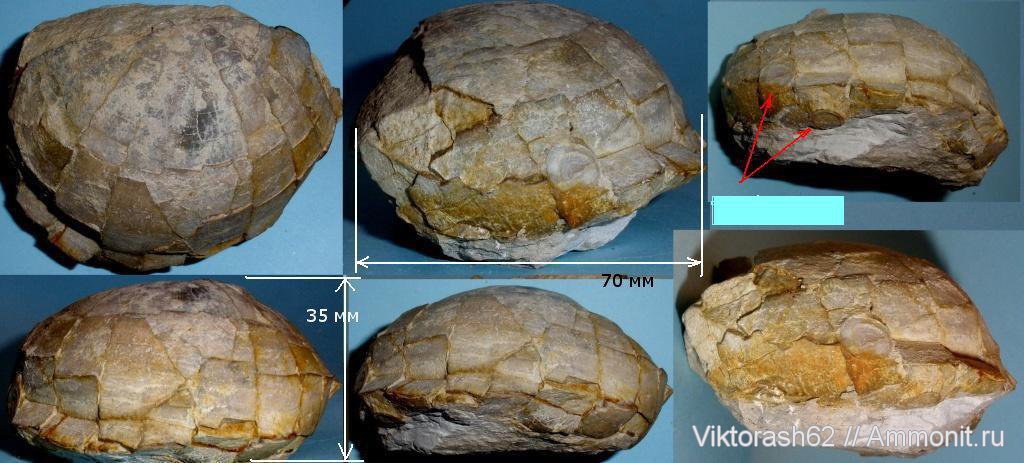 Вот такого морского ежа удалось вырубить из плиты. Немного покалеченный, но такие ежи у нас целыми еще ни разу не попадались. Сбоку на еже два круглых образования (указаны стрелками). Предположительно Echinocorus sp.