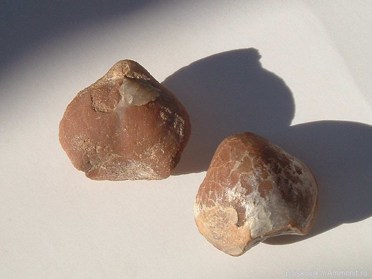 Брахиоподы из красных известняков в районе села Верхоречье. Размер 1,5см Х 1,5см.