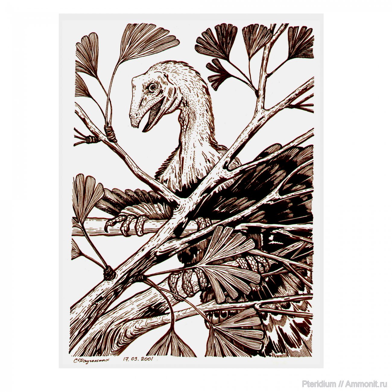 Каудиптерикс, пернатый динозавр из нижнего мела провинции Ляонинь, Северный Китай.