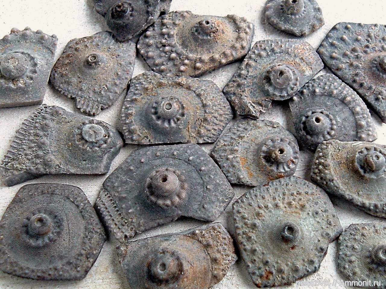Панцирные щитки морских ежей из юрских отложений в окресностях Нового Света.