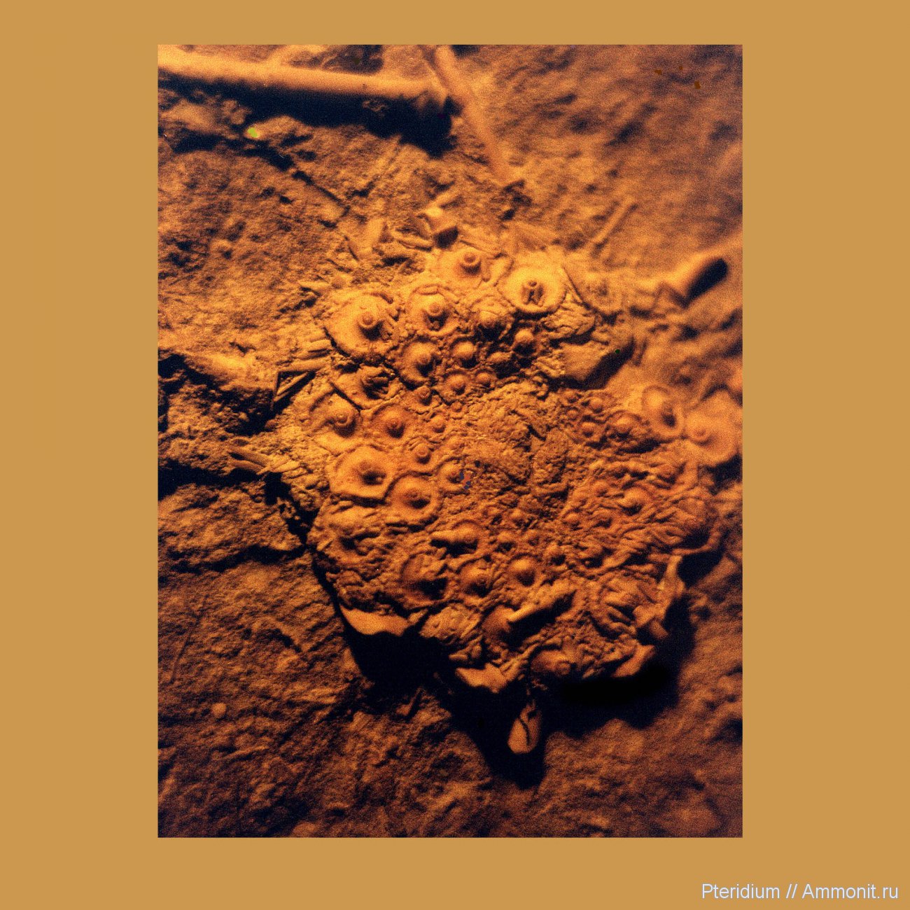 Archaeocidaris rossica Buch; какие-либо склейки или реконструкция полностью отсутствуют. Диаметр панциря - 4,5 см. Образец из моих старых сборов еще 90-х годов.