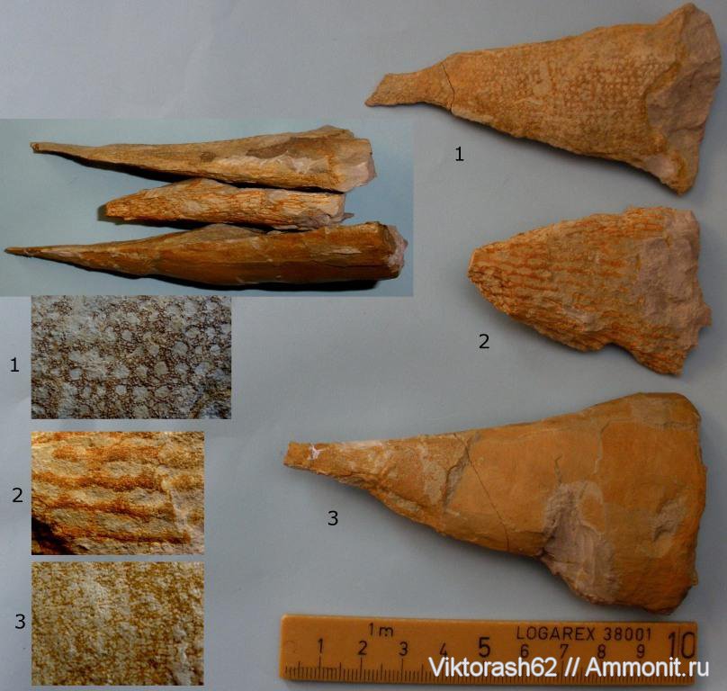 Мне часто попадаются вот такие "языки" (в №2 отломался и улетел носик). По форме они все одинаковые, а верхняя структура у всех иная. Всередине они заполнены породой. р.Днестр,верхний мел. Что-бы это могло быть? Спасибо всем за помощь в определении.