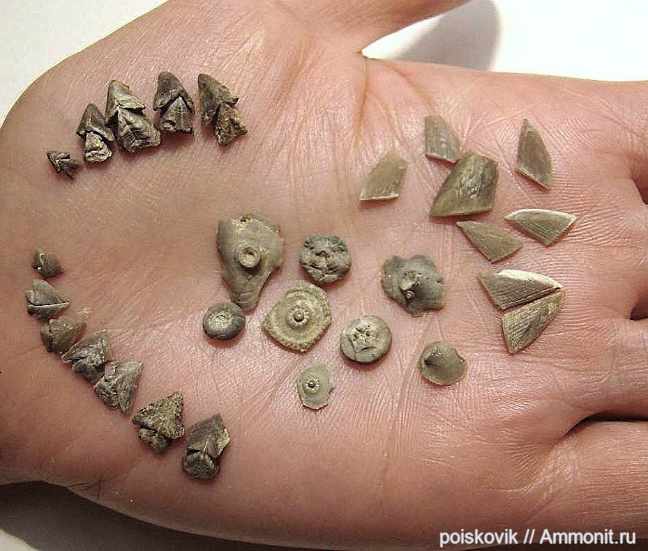 Сегодняшние находки: ринхолиты, аптихи, пластинки морских ежей, чашечки морских лилий и еще что-то непонятное.