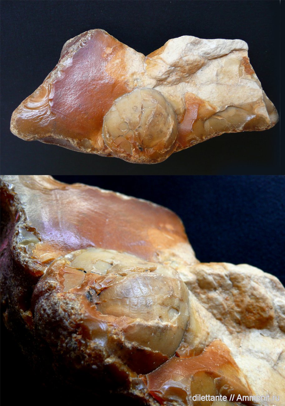 Очень здорово смотрится кремневый морской еж в куске кремня! А в этом месте встречаются только ежи? Нет ли там аммонитов или какой-то еще фауны? | ||||||