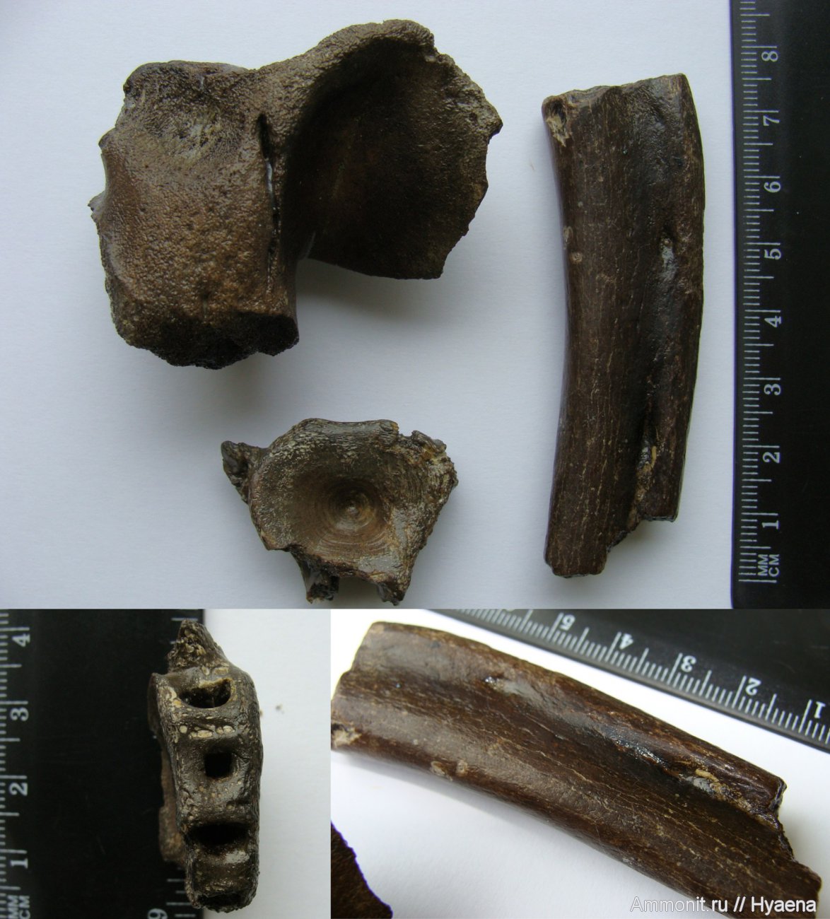 Позвонок, часть черепа(?) и ребро (по-моему несет следы "покусов"). Данные образцы найдены в этаком "танатоценозе" с многочисленными остатками костных рыб и зубов акул.