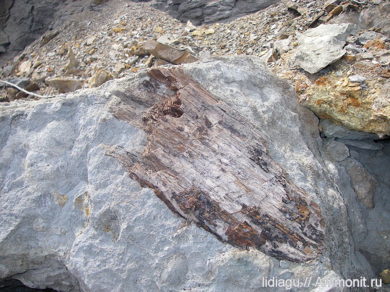 Это валанжин. Он там повсюду нашпигован, но обнажён не ахти. И древесина рыхлая, скорее углефицированная, чем окремнённая. | ||||||