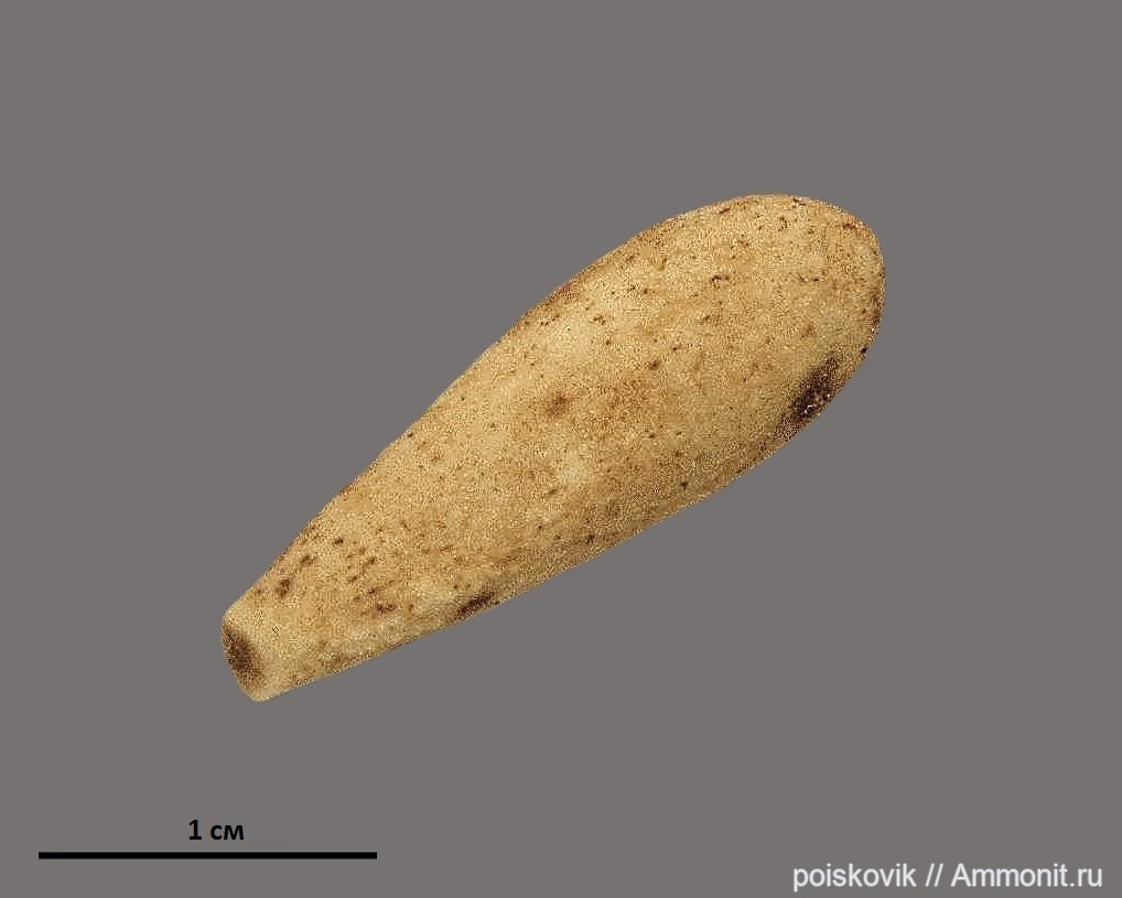 Игла морского ежа из красных глинистых известняков Верхоречья (баррем). Длина - 2,2см.