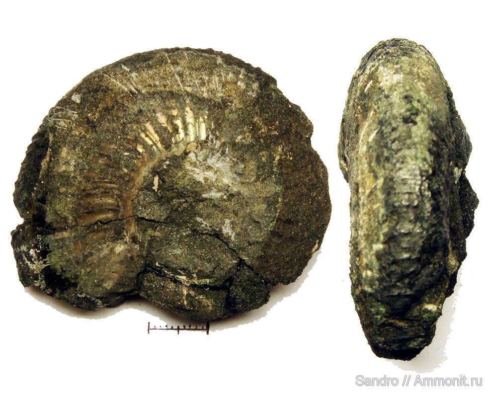 Сохранность плохая но бросается в глаза лысая умбальная сторона видимого оборота, все рёбра начинаются на боковой стороне.
