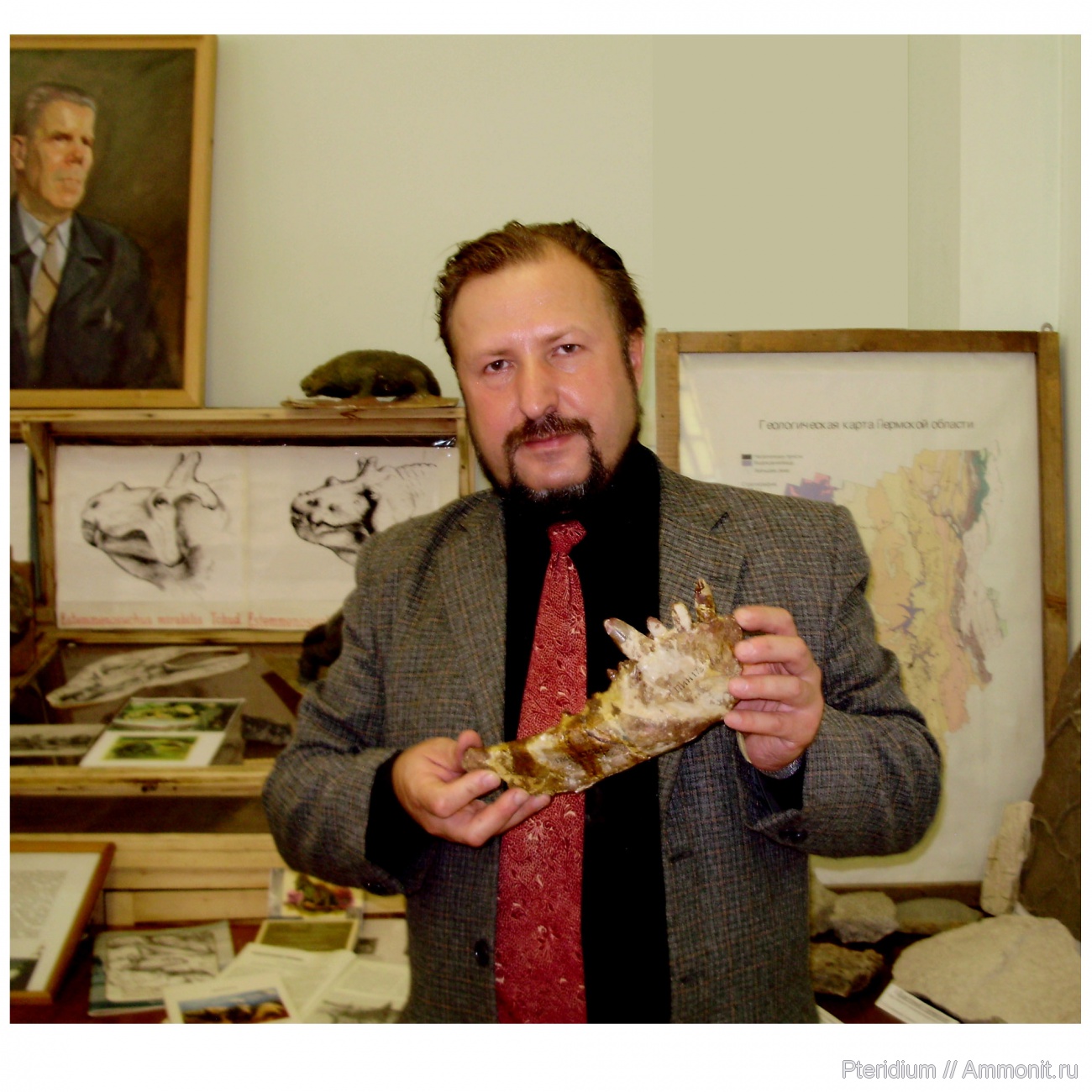 Челюсть Estemmenosuchus из Палеонтологического музея Пермского государственного университета. Большое спасибо заведующей музеем М.Н. Черных за содействие в работе с экспонатами музея!