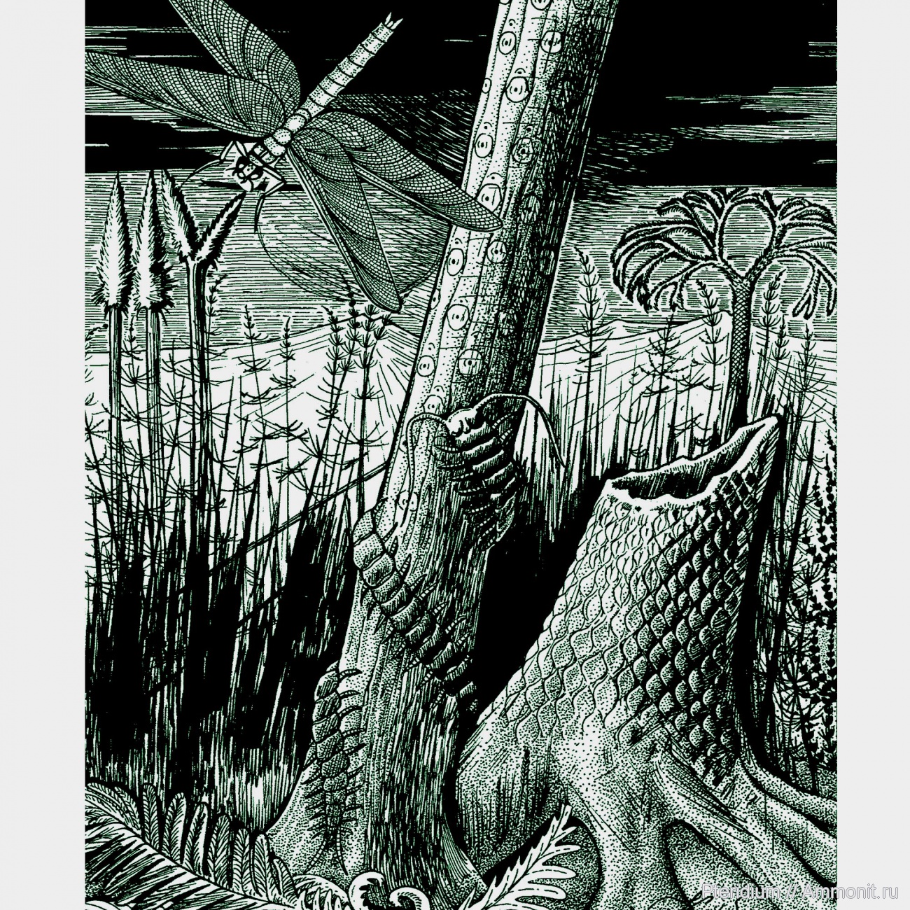 Посмотрел на этот замечательный рисунок и сразу назвал три растения. Если бы кто нибудь раньше сказал, что я смогу на рисунках определять ископаемые растения из каменноугольного периода, я бы долго смеялся. | ||||||