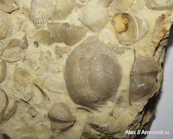 Несколько раковин брахиопод с большой плитки. Полностью эта "брахиоподовая мостовая" видна на этом фото: Дно девонского моря