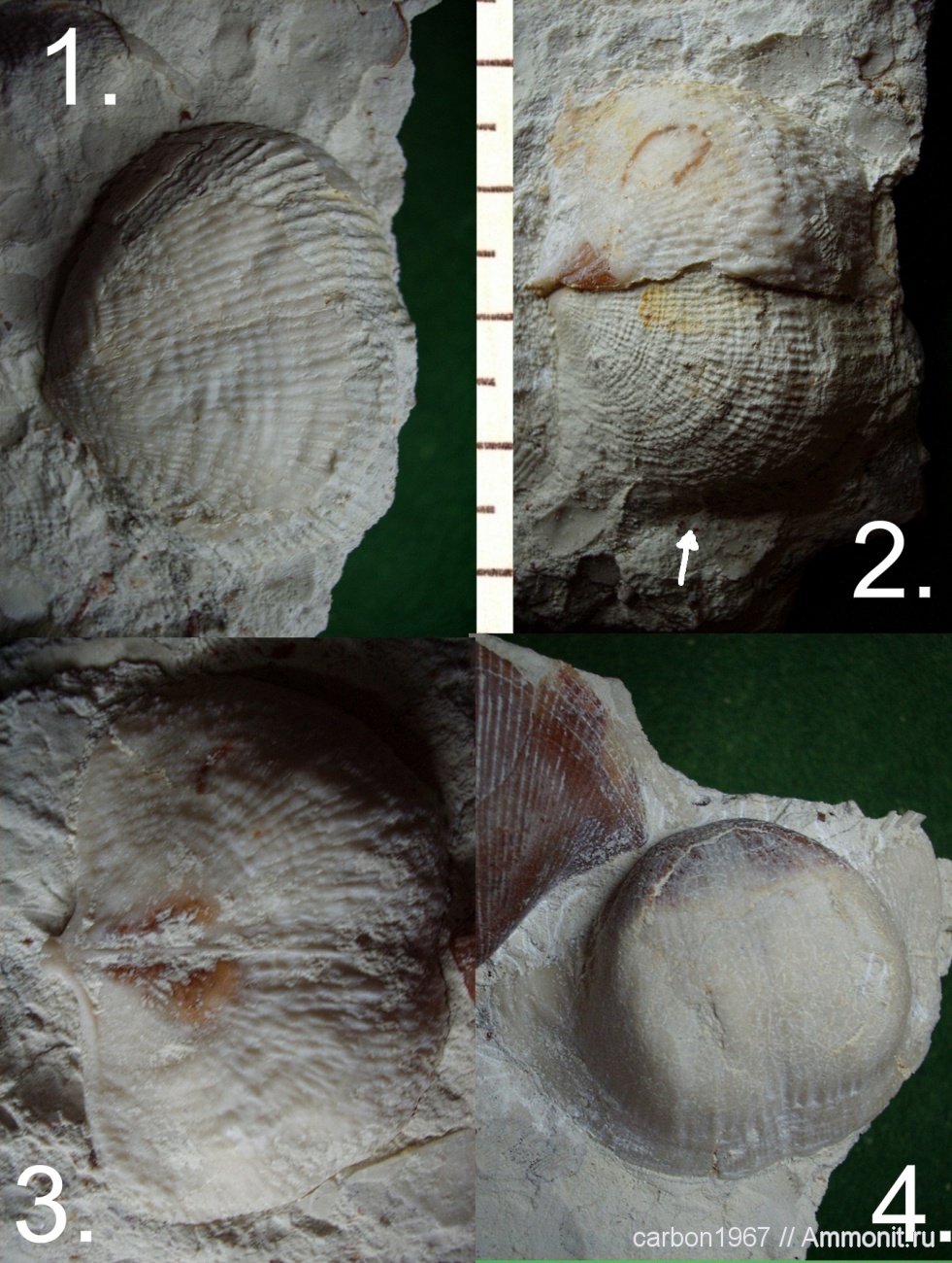 Как-то не очень внятно написано... Непонятно, где книги ошибаются. 1. - Нужно повертеть в руках, но... Это, вроде, не отпечаток внешней стороны спинной створки. Зато на 2. - Отпечаток внешней стороны спинной створки под тем местом, где при расчистке отскочила половинка спинной створки. Если 3 - Внутренняя поверхность спинной створки, то не видно следов крепления лофофора и всего остального. | ||||||