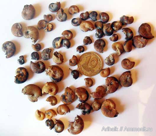 Вот еще аммониты, найденные параллельо с ринхолитами, в глинах... Средний размер аммонита в этой подборке от 1 до 3 мм