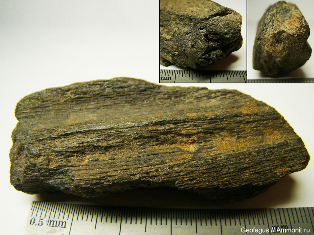 У кости бывает разная структура. поперечные сколы здесть больше напоминают дерево, но не стоит забывать что образец сильно окатан. | ||||||