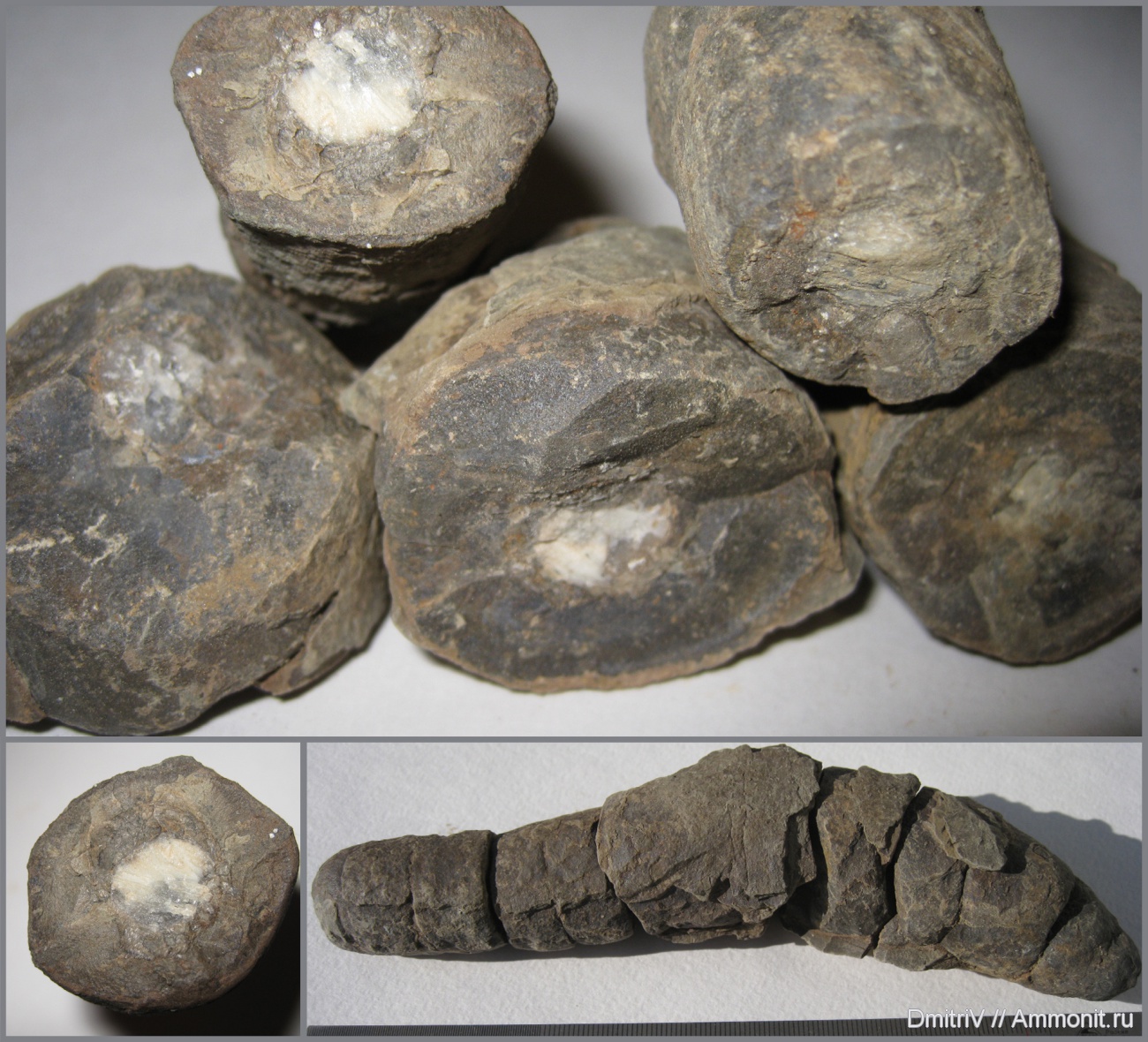 В левой части он похож на фрагмокон крупного безрострового белемнита или даже аулакоцератида. Хотя мел - это для аулакоцератид поздновато, скорее белемнит. Справа может быть просто конкреция. А вблизи он не похож на эту находку? | ||||||