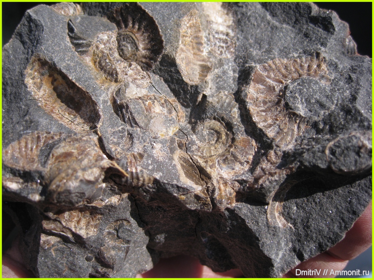 При расколе конкреции обнаружили отпечатки разных аммонитов.